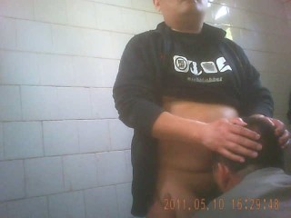 chinese bear gets bj in pubic toilet